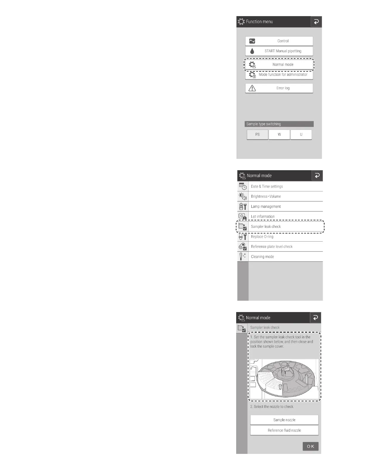 3. Touch SAMPLER LEAK CHECK.