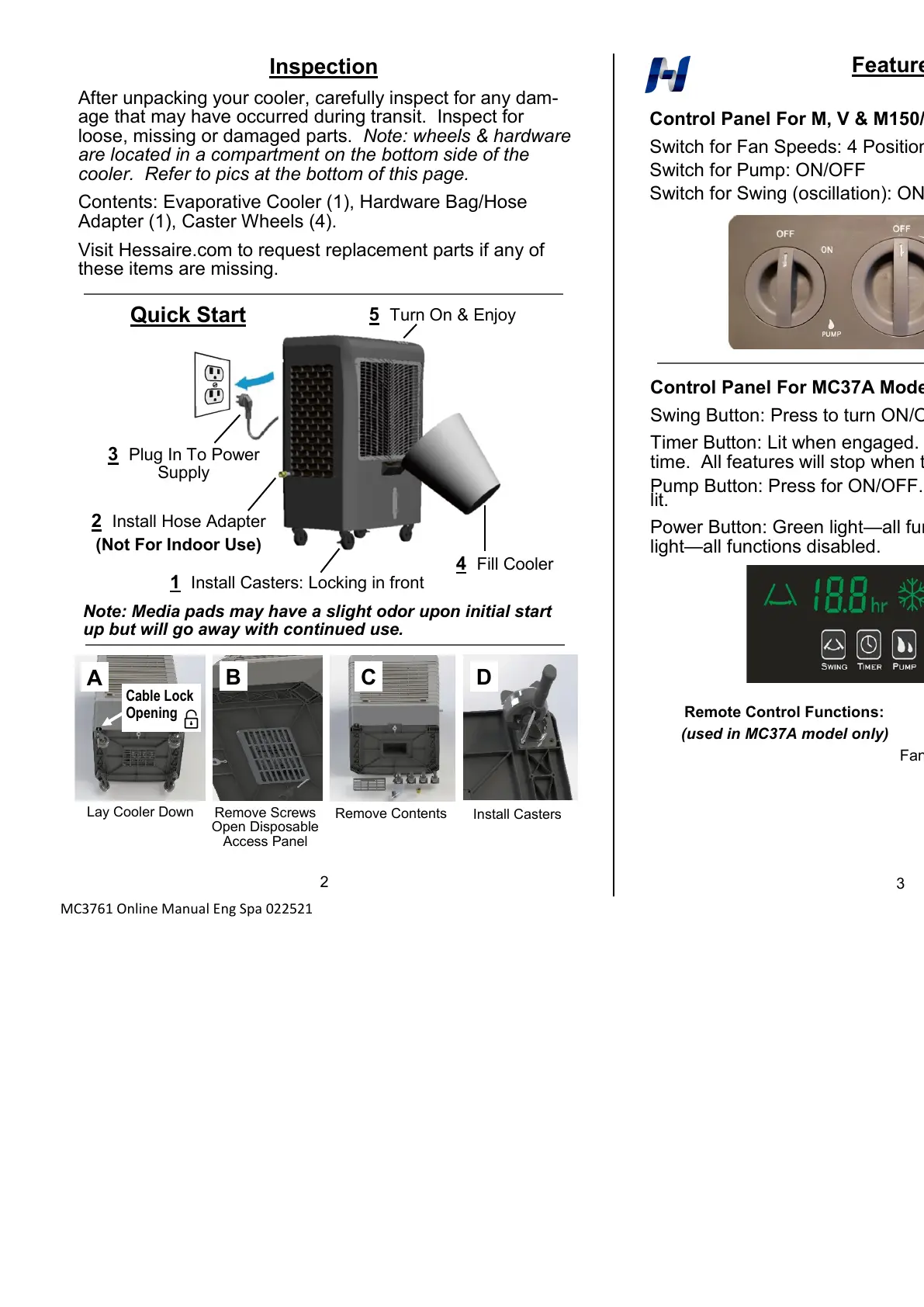 Contents: Evaporative Cooler (1), Hardware Bag/Hose