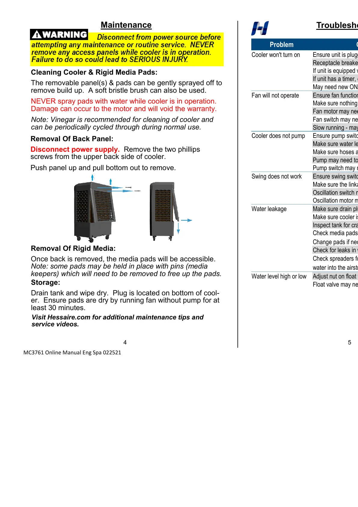 Visit Hessaire.com for additional maintenance tips and