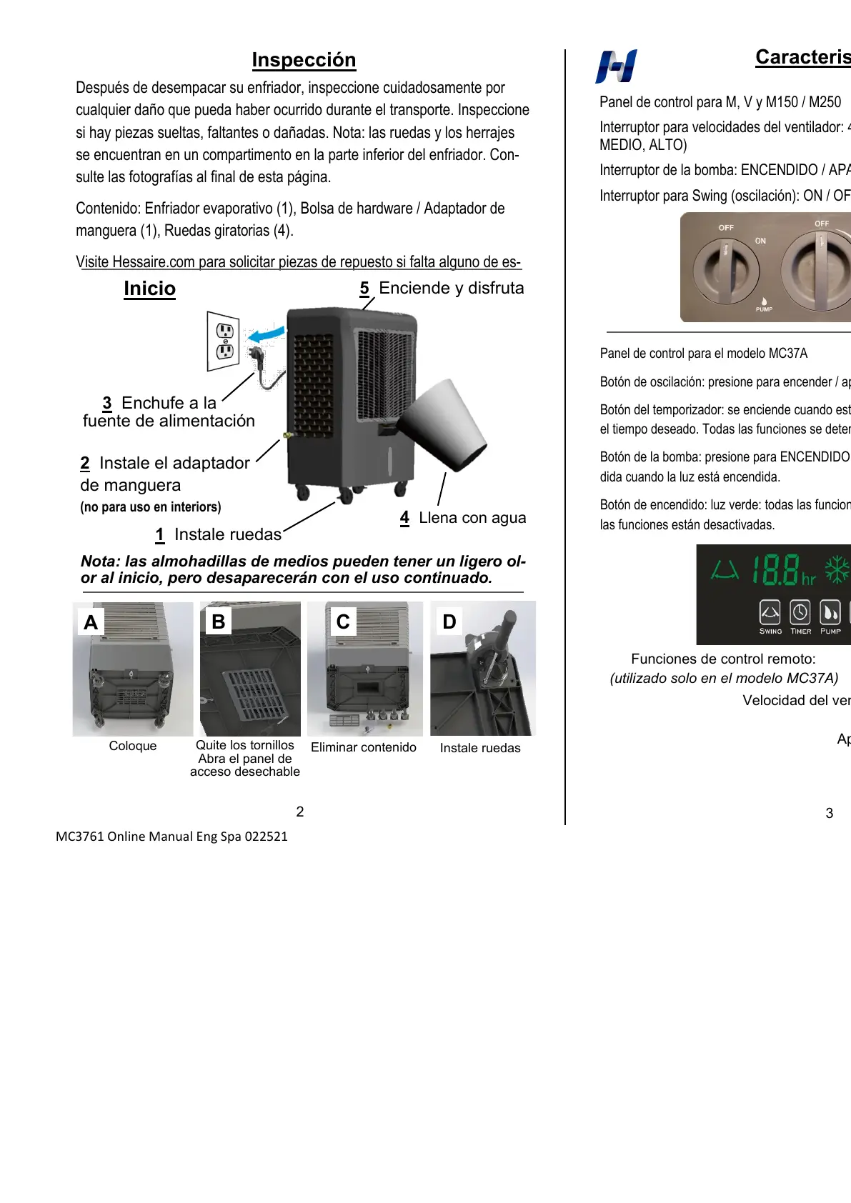 Visite Hessaire.com para solicitar piezas de repuesto si falta alguno de es-