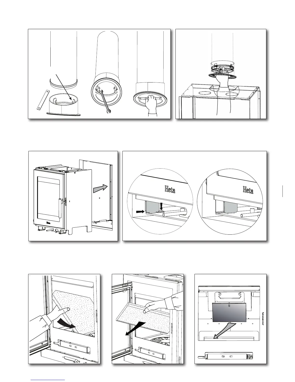 Heta INSPIRE 40 - 2.10 Fitting the flue collar on the chimney; 2.11 Fitting the stove; 2.12 Fitting the flue collar to the stove