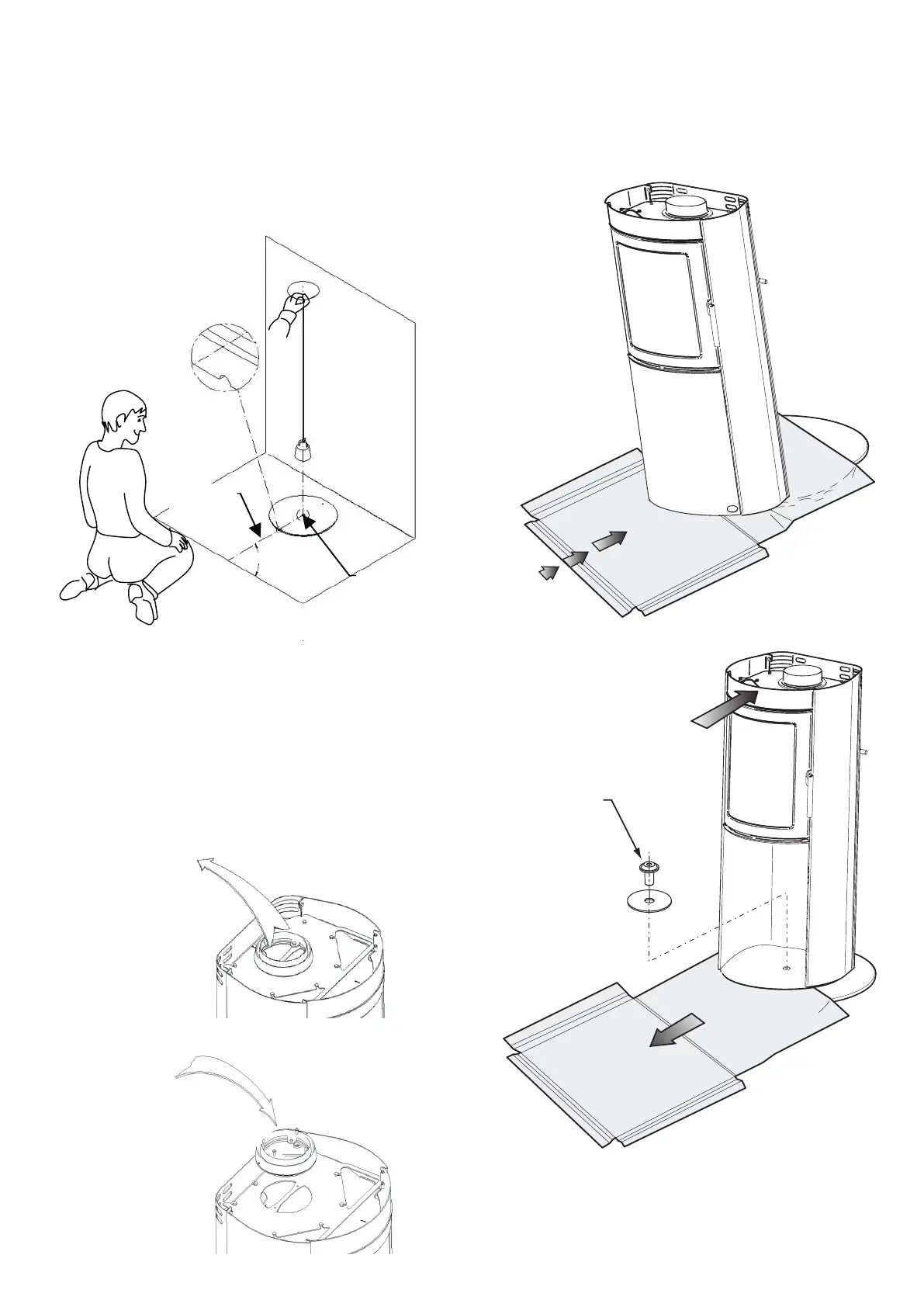 Plaats de kachel boven het centrum en monteer de cen-