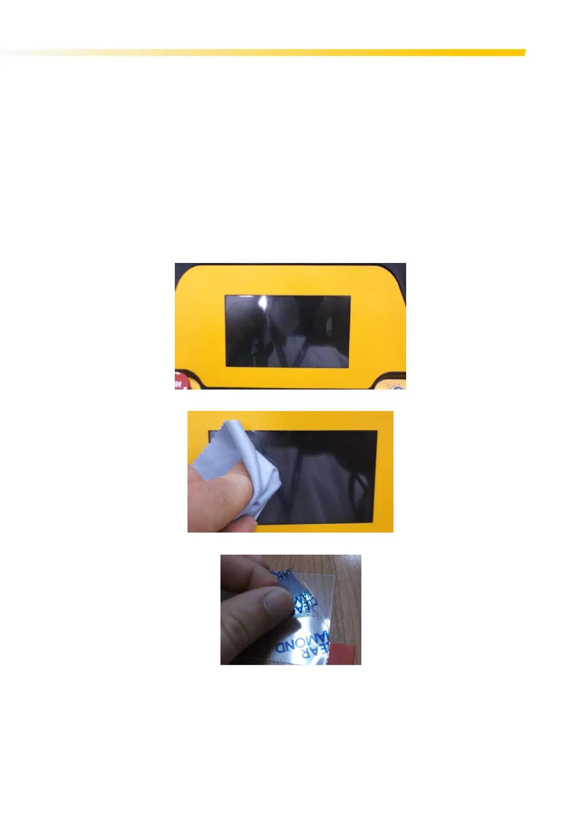 2. Check that the display is free from scratches and dents before the new protective film is to be applied.