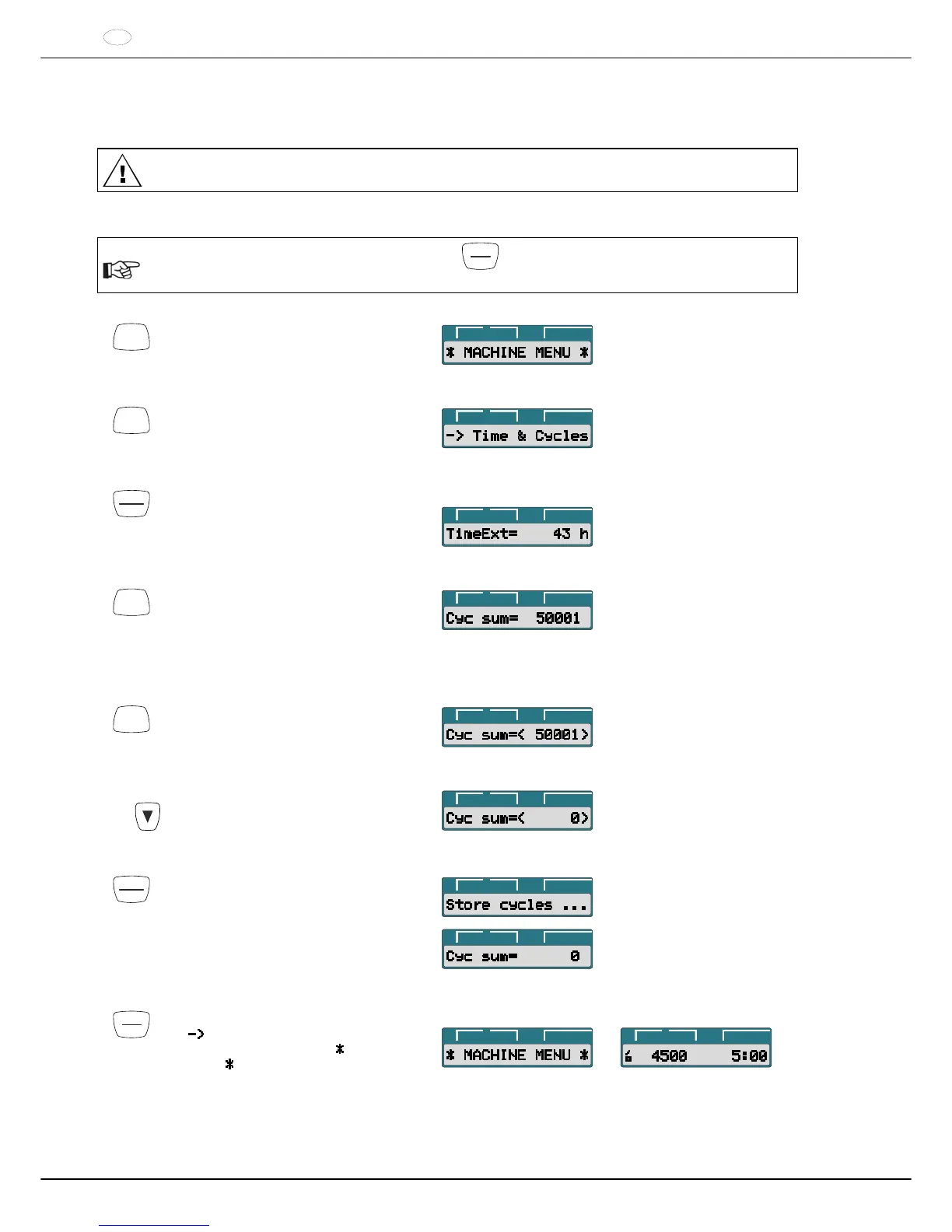 Der Zyklenzähler kann, bei Stillstand des Rotors, wie folgt zurückgesetzt werden:
