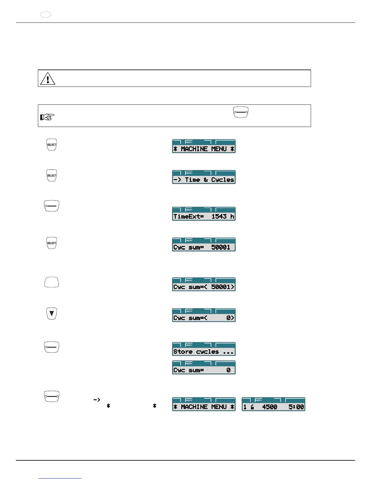 Lorsque le rotor est à l'arrêt, vous pouvez réinitialiser le compteur de cycles comme suit: