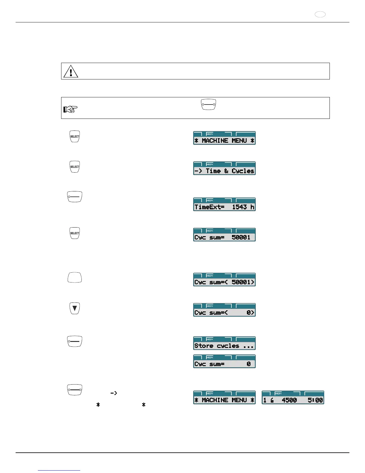 Der Zyklenzähler darf nur auf Null zurückgesetzt werden, wenn zuvor der Rotor bzw. die Gehänge gegen