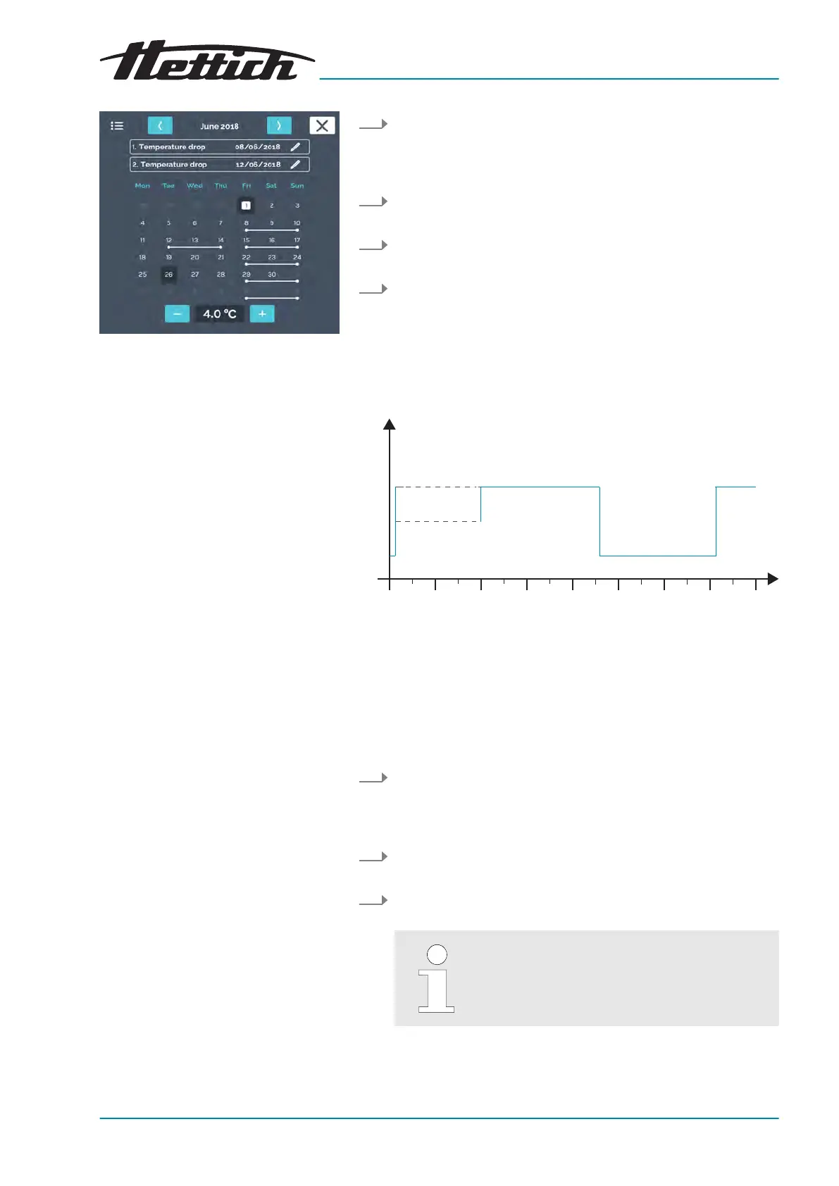 1. In manual mode, set the temperature drop to 4°C from Friday