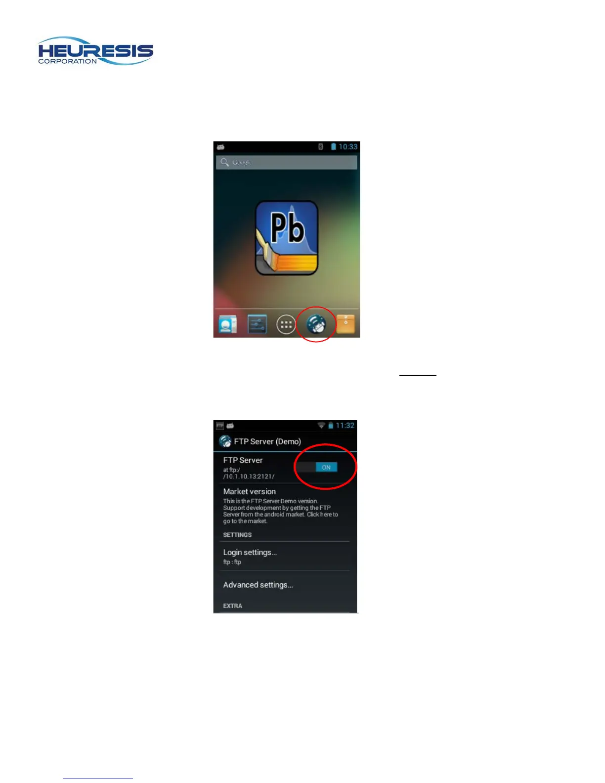 f) To enable the FTP server, click on the icon and swipe from off to on. Caution: The FTP server