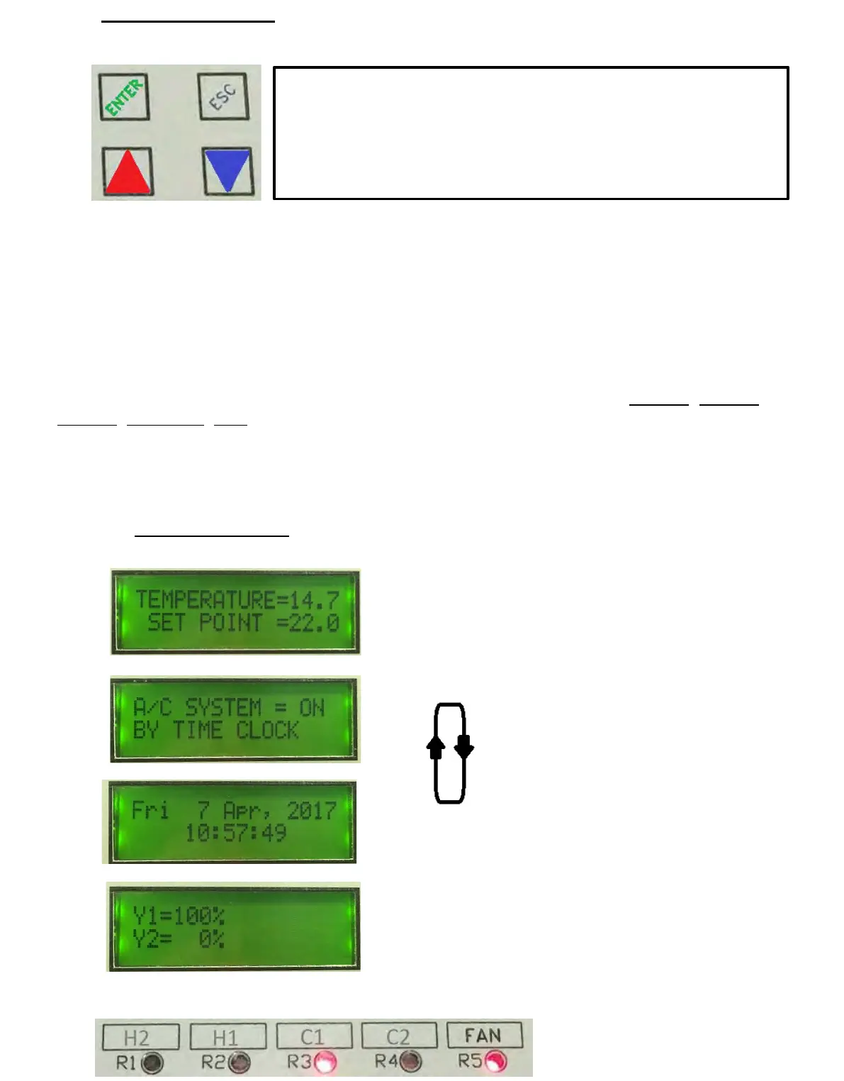 “UP & “DOWN” BUTTONS ADJUST SETPOINT, SCROLL MENUS & TO EDIT VALUES.