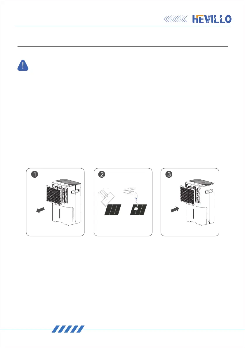 - Clean the dehumidifier, bucket and filter.