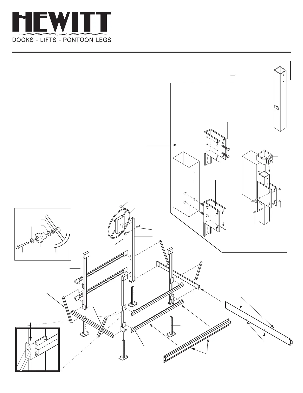 overtighten, pulley must turn freely. Insert chain bolt into corner winch upright and secure with 3/8" washer and nut.