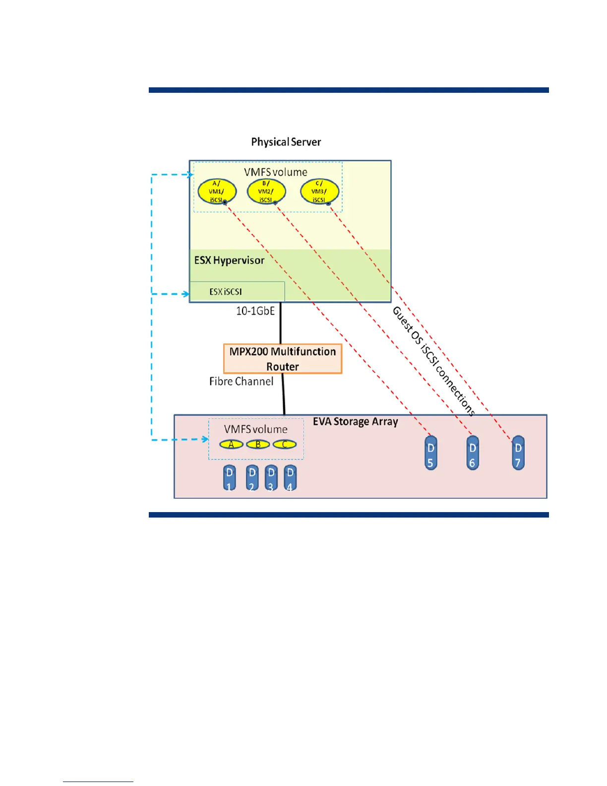 Figure 2 shows the improved way of configuring iSCSI in a hypervisor and on virtual machines.