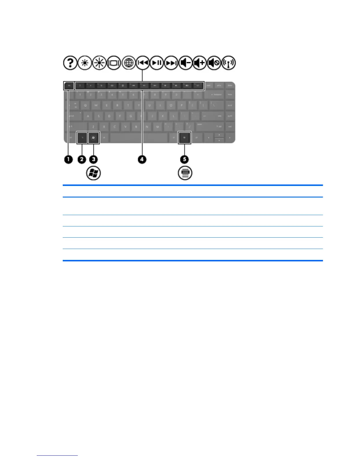 (5) Windows applications key Displays a shortcut menu for items beneath the pointer.