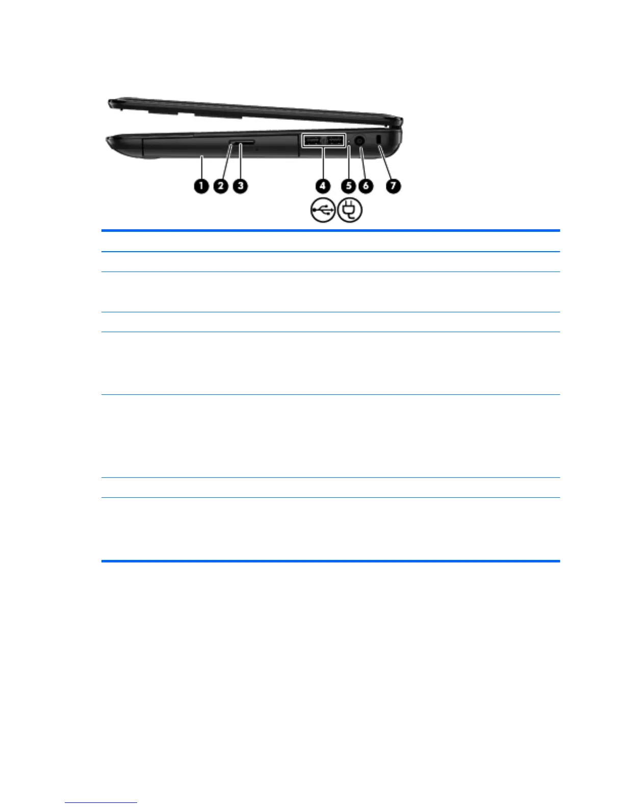 (1) Optical drive Reads and writes (select models only) to an optical disk.