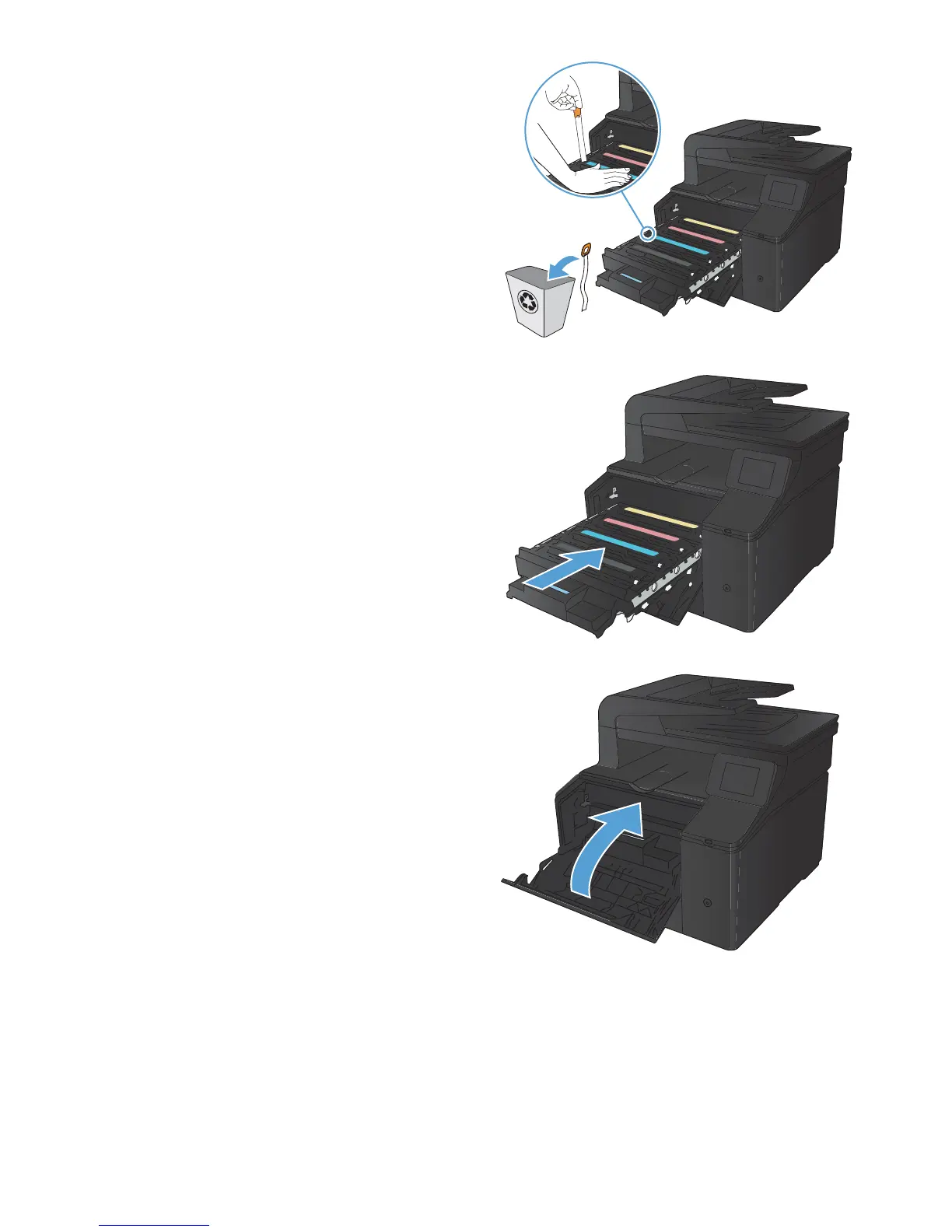 9. Pull the tab on the left side of the toner