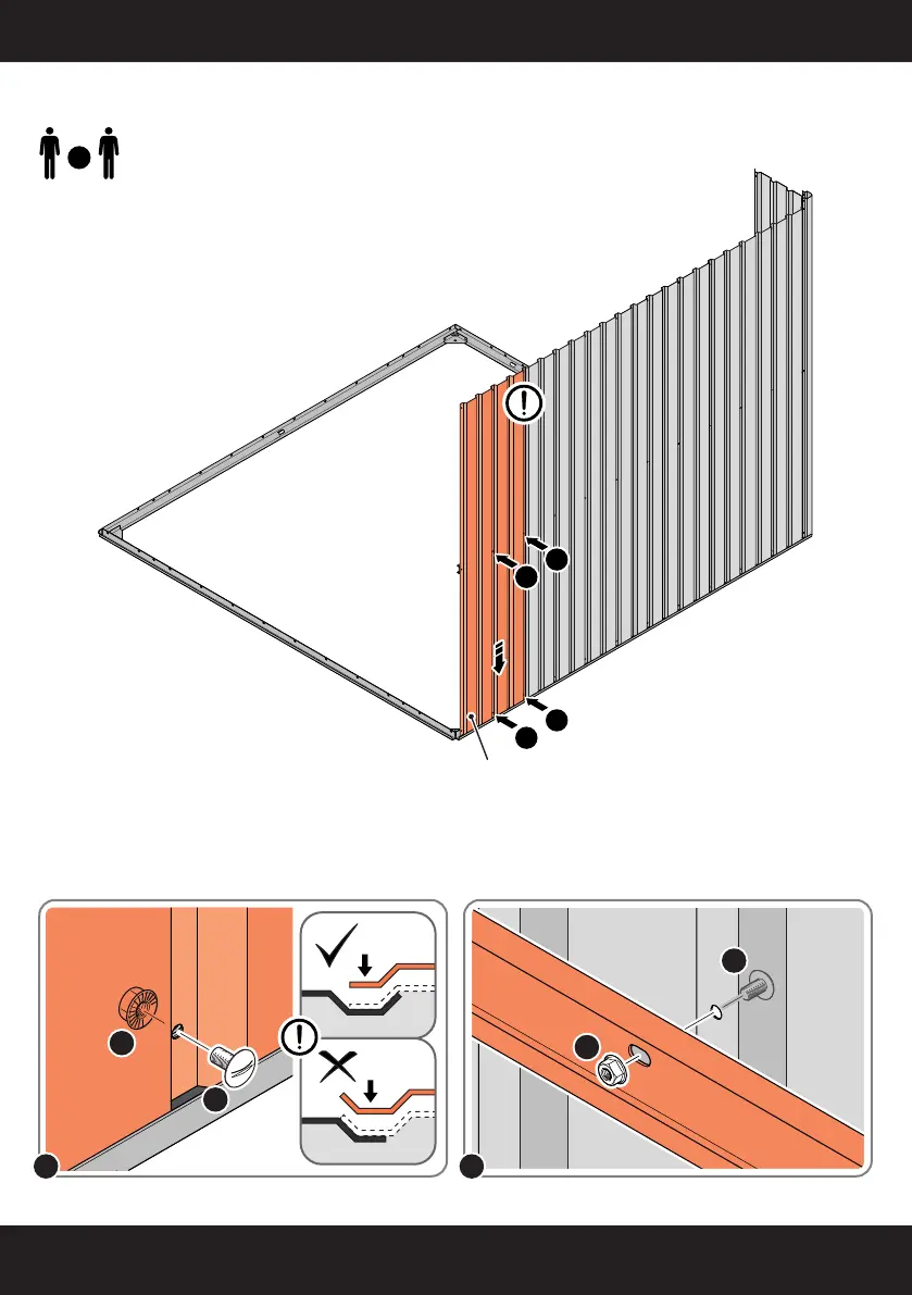 LOCATE AND LOOSELY ATTACH WALL PANEL AT x2 LOCATIONS INDICATED.