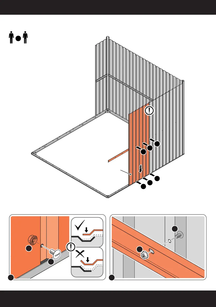 LOCATE AND LOOSELY ATTACH WALL PANEL AT x3 LOCATIONS INDICATED.