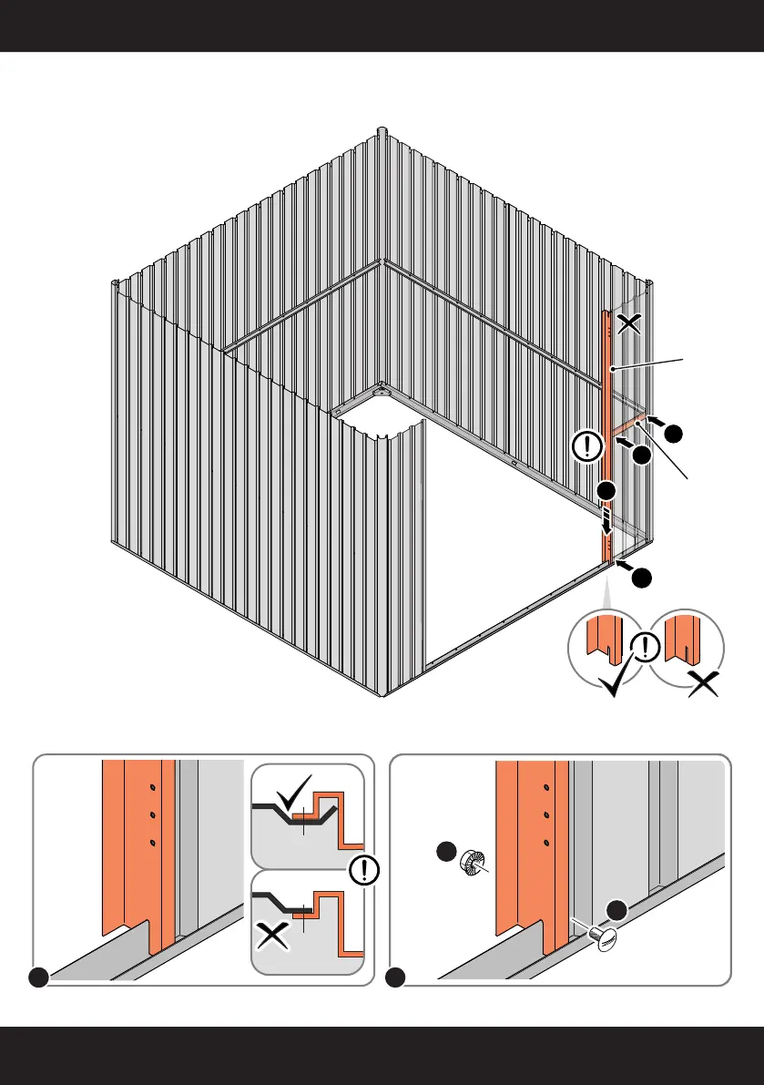IMPORTANT: DO NOT SECURE AT UPPER FIXING POINT AT THIS STAGE.IMPORTANT: ENSURE DOOR POST IS IN THE CORRECT ORIENTATION.