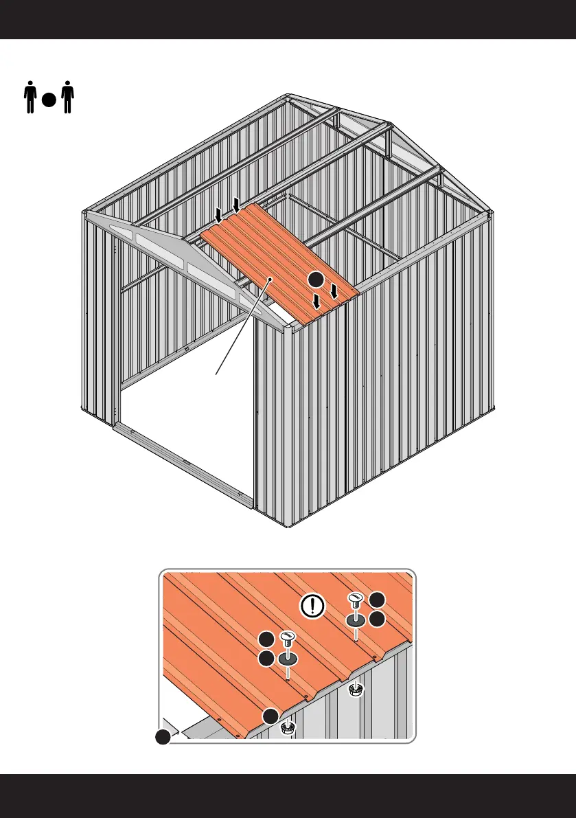 SECURE ROOF PANELS AT x4 LOCATIONS INDICATED USING TYPICAL FIXING METHOD.