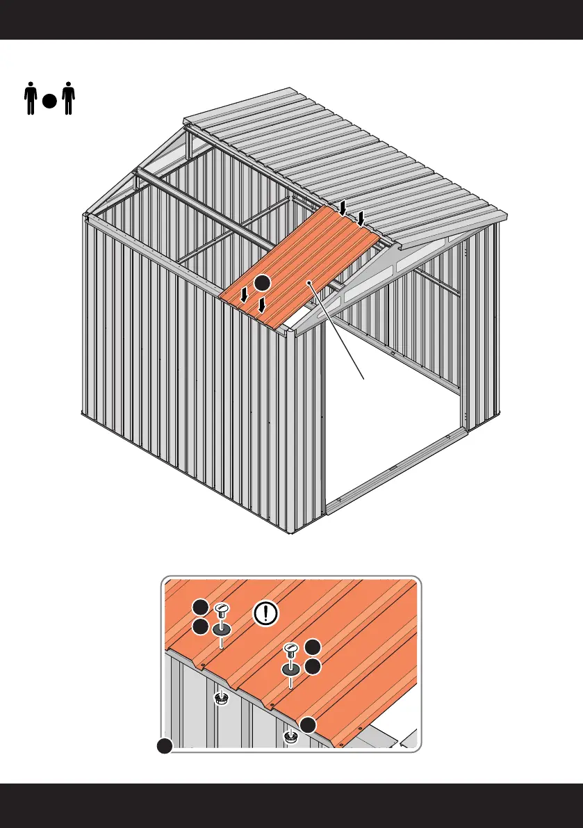 SECURE ROOF PANELS AT x4 LOCATIONS INDICATED USING TYPICAL FIXING METHOD.