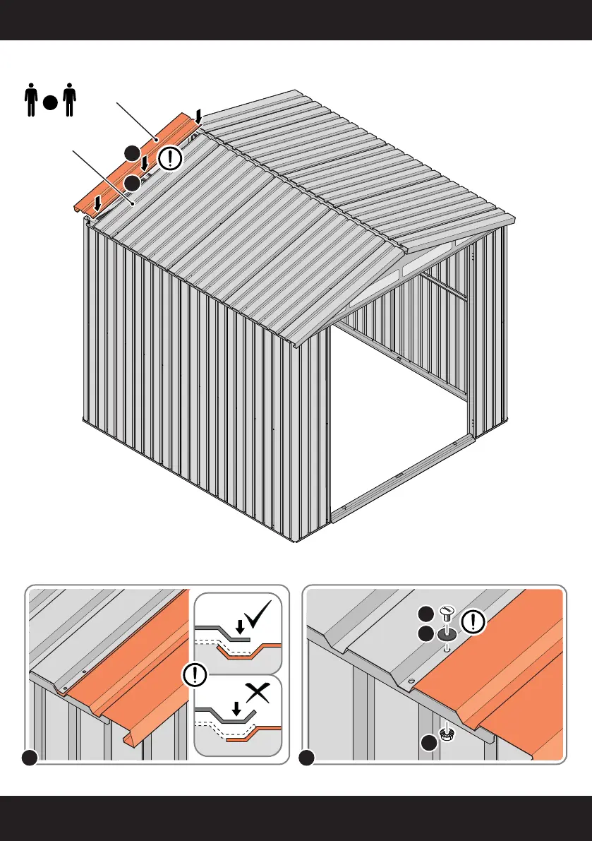 SECURE ROOF PANELS AT x 3 LOCATIONS INDICATED USING TYPICAL FIXING METHOD.