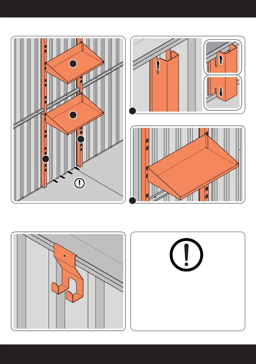 LOCATE EACH SHELF 0205-38-02 ONTO SHELF POST AS DESIRED.