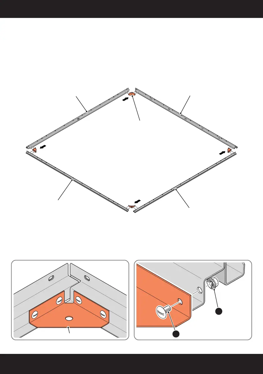 SECURE EACH CORNER BRACE 0203-03 AS SHOWN ABOVE.