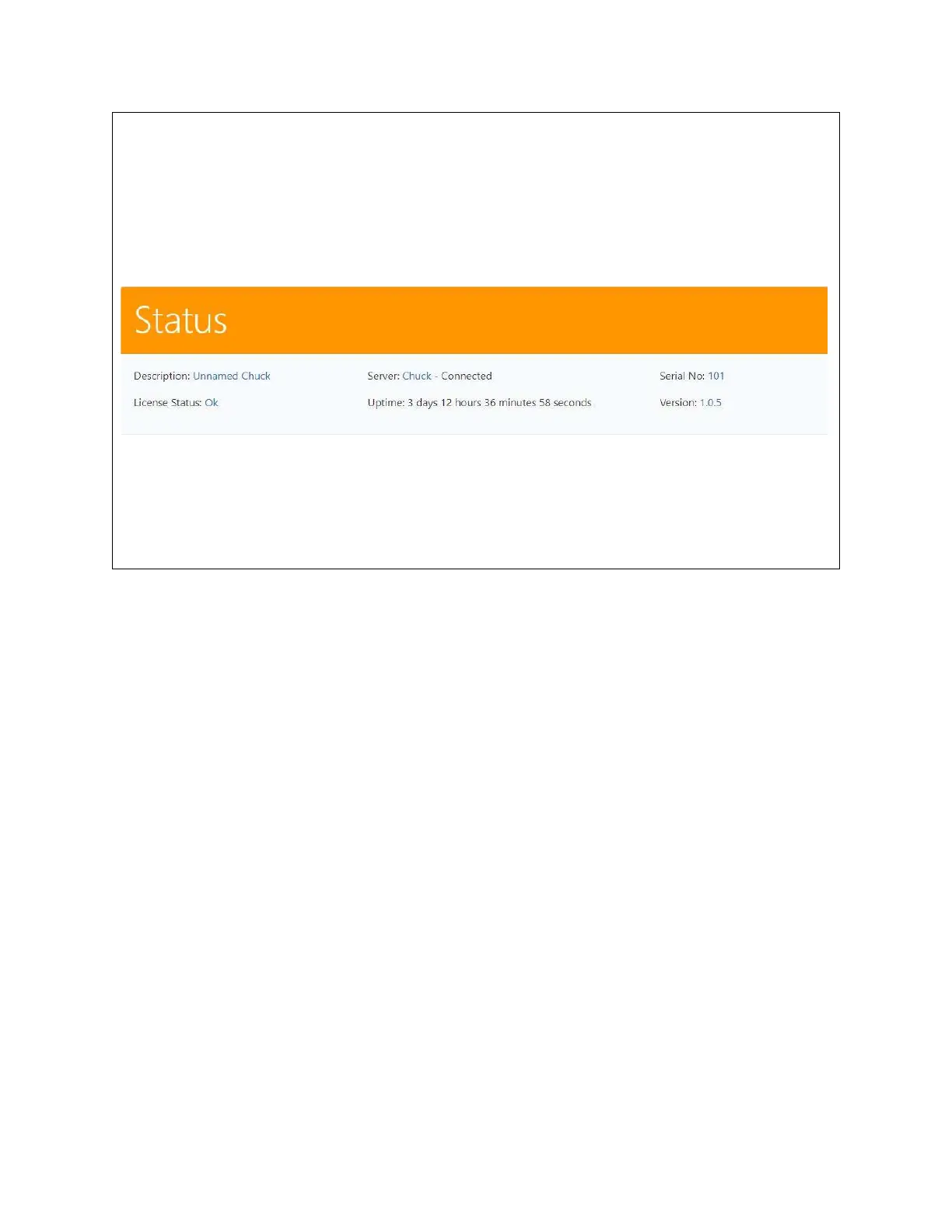 CHUCK Server. This field will continue to tick off seconds letting you know your system is