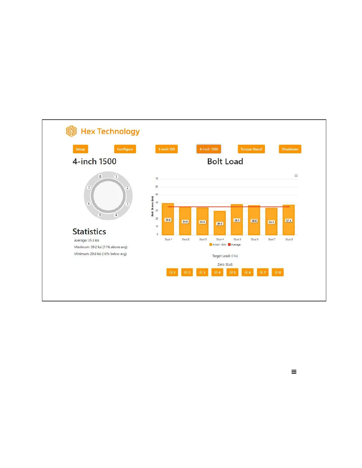 Example Flange reading. The stud with the greatest bolt load has 39.2 ksi, which is 11% above average bolt load.