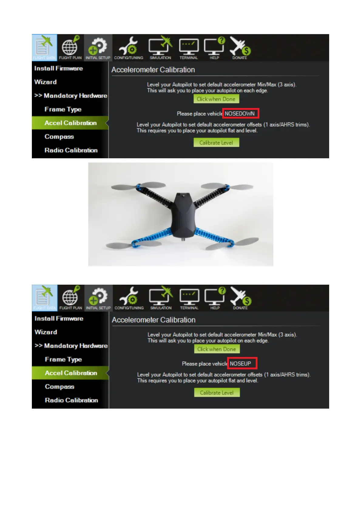 5. Place the vehicle nose to upward then press "Click when Done".
