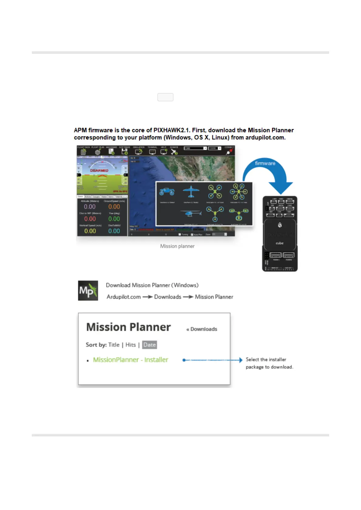 Before installing firmware to The Cube, please download latest version of Mission Planner from ArduPilot