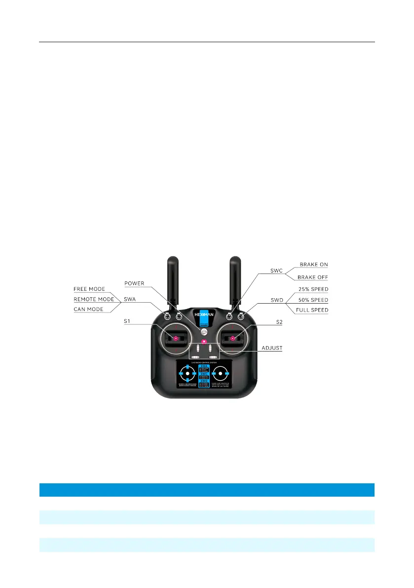 SWA: Working mode; Upper: Free mode, motor power off; Middle: Remote control mode;
