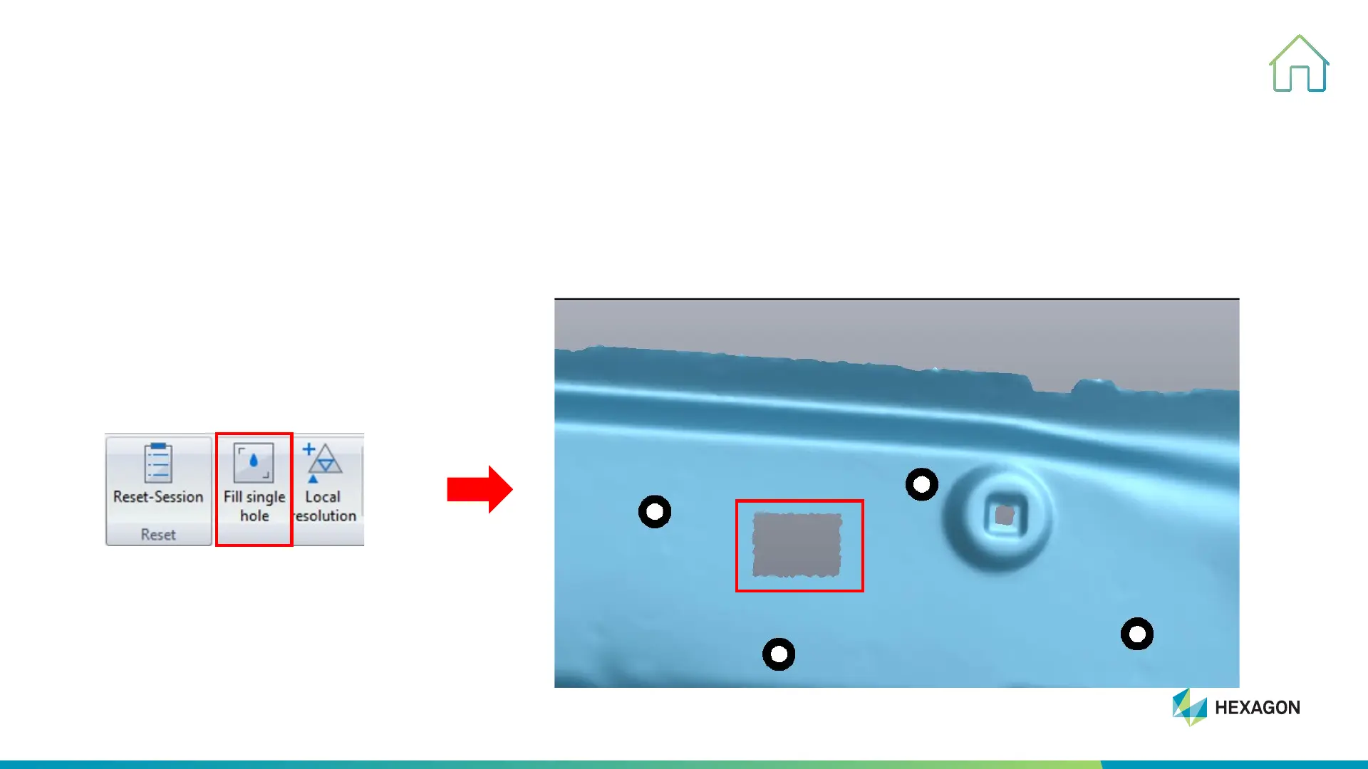 Click “Fill single hole” firstly, and then select the hole and left click to complete filling the hole.