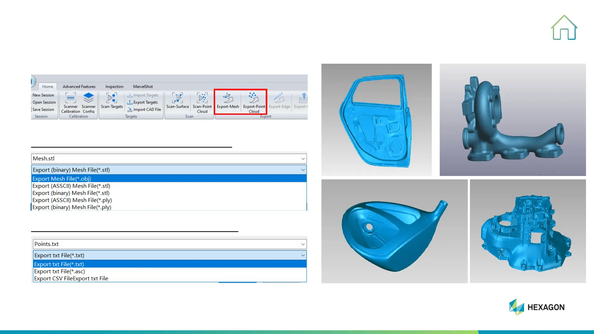 Export mesh format as .obj; .stl; .ply; etc.