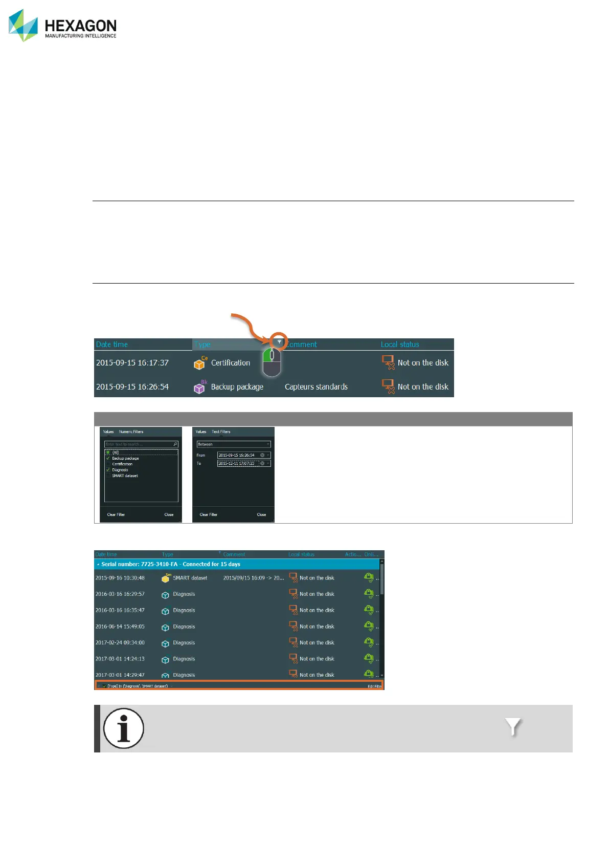 At the bottom of the screen, is displayed the current filter, with possibilities to select, edit and remove.