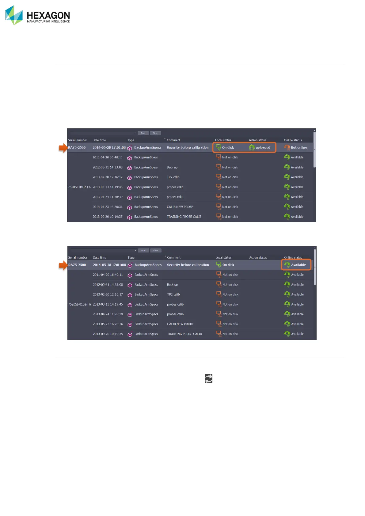 In case of a synchronization issue, a “Refresh” button ( ) permits a new manual synchronization.