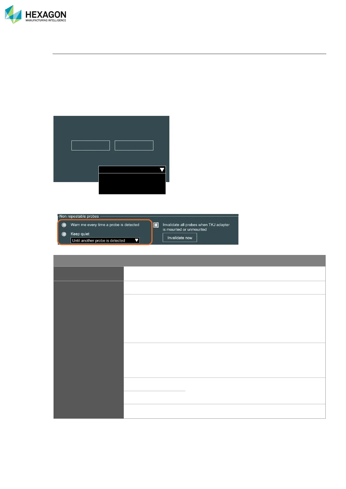 • For the non-repeatable probes, specific parameters are automatically displayed in Control Panel probe