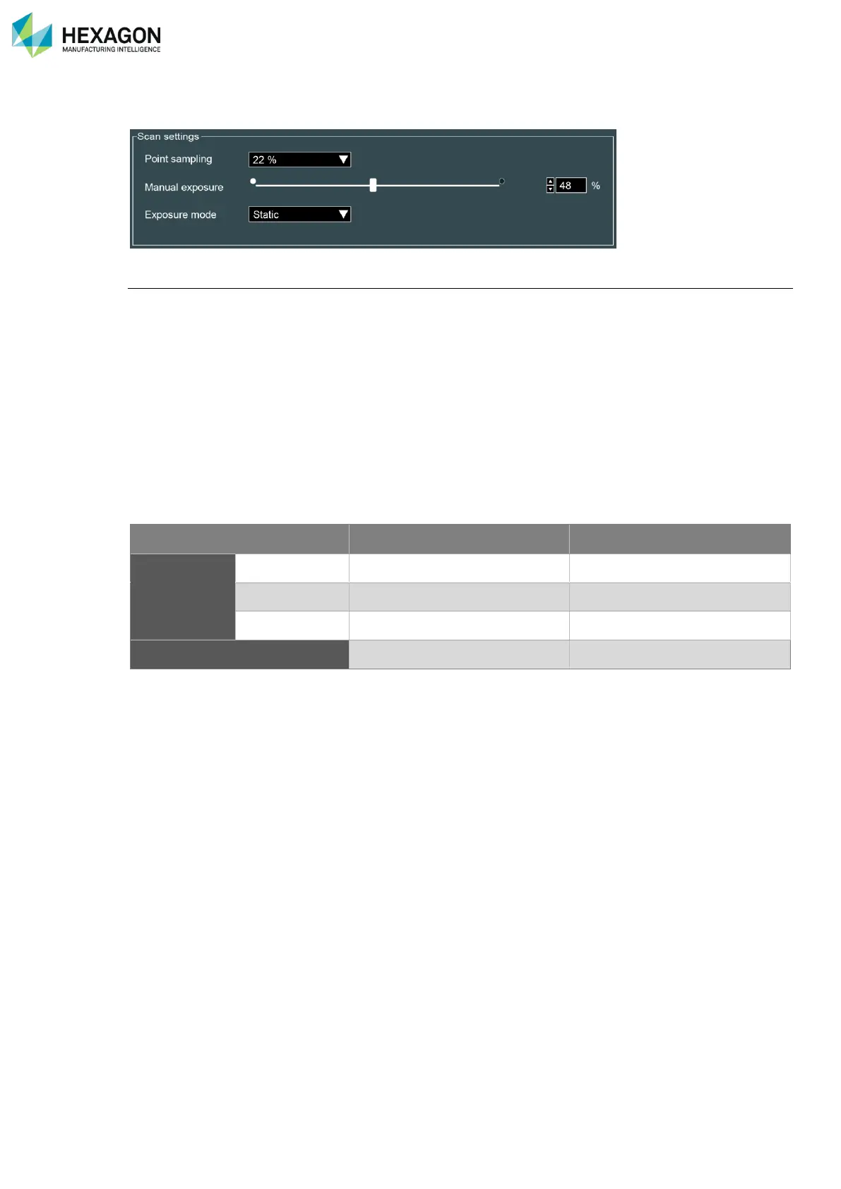 • Manual mode: while scanning, the exposure is fixed. This is useful for a regular scanning, on a single