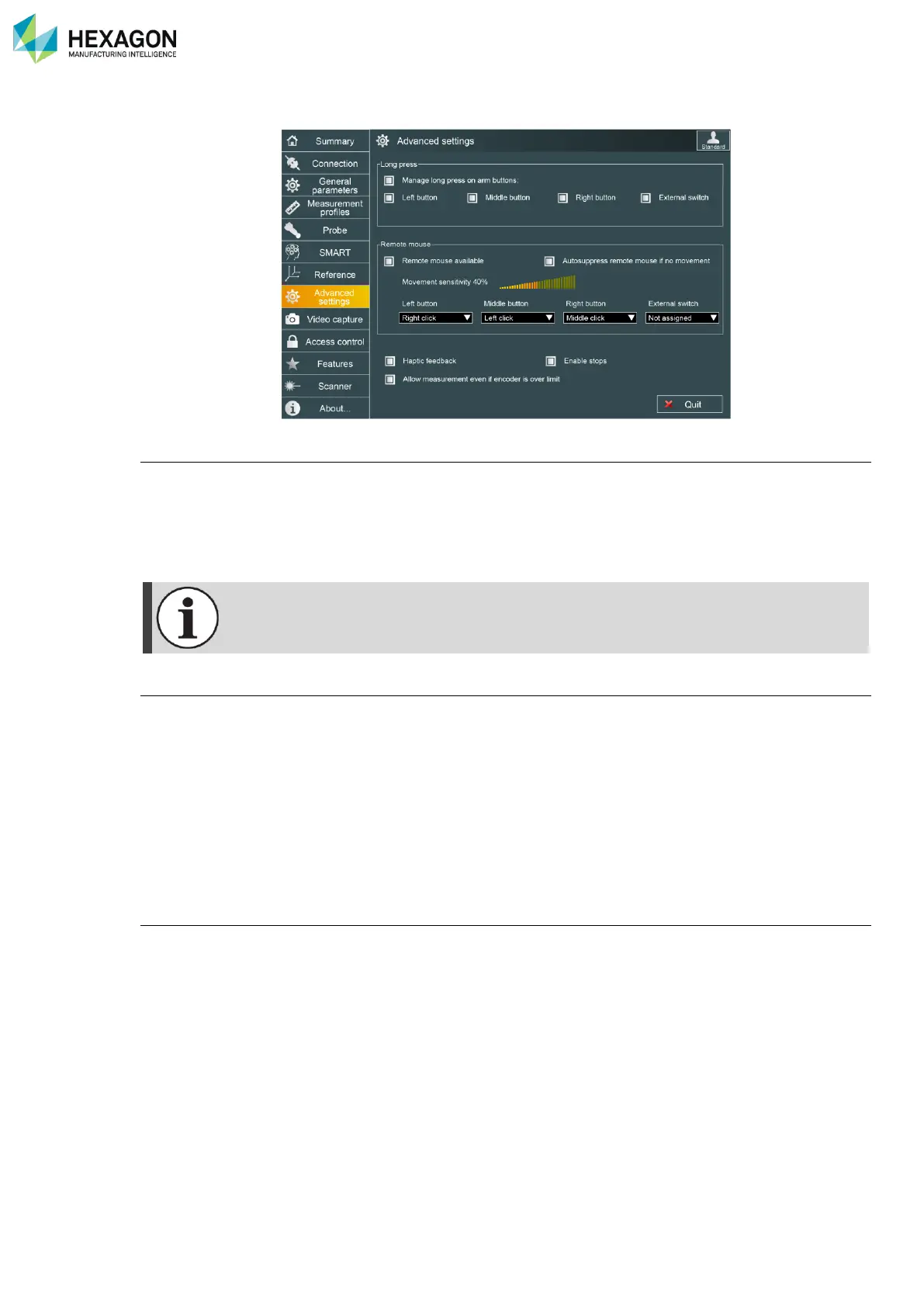 • Remote mouse available: unselect to completely deactivate the mouse of the arm.