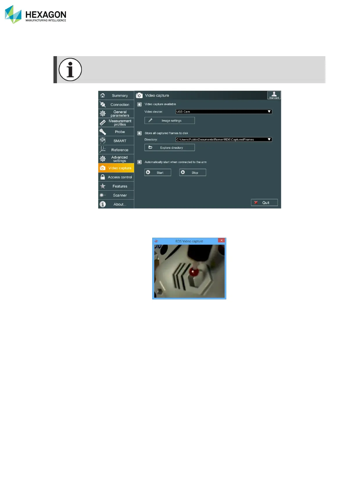 When Video capture is activated, a picture is automatically taken and sent to the measurement software