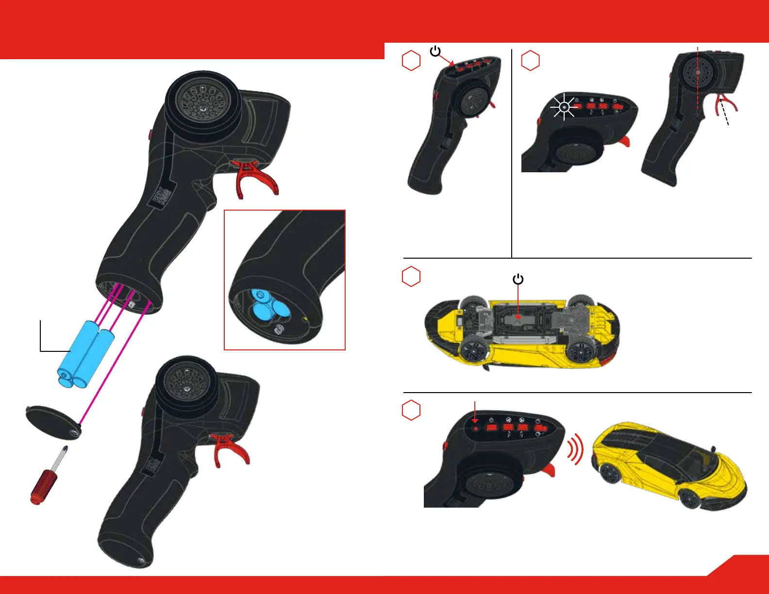 La DEL du transmetteur brillera en continue et de couleur rouge quand il est associé avec la voiture.