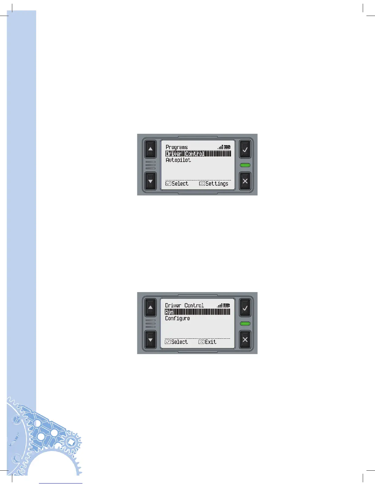 When selecting the Driver Control program from the Programs Screen, two additional
