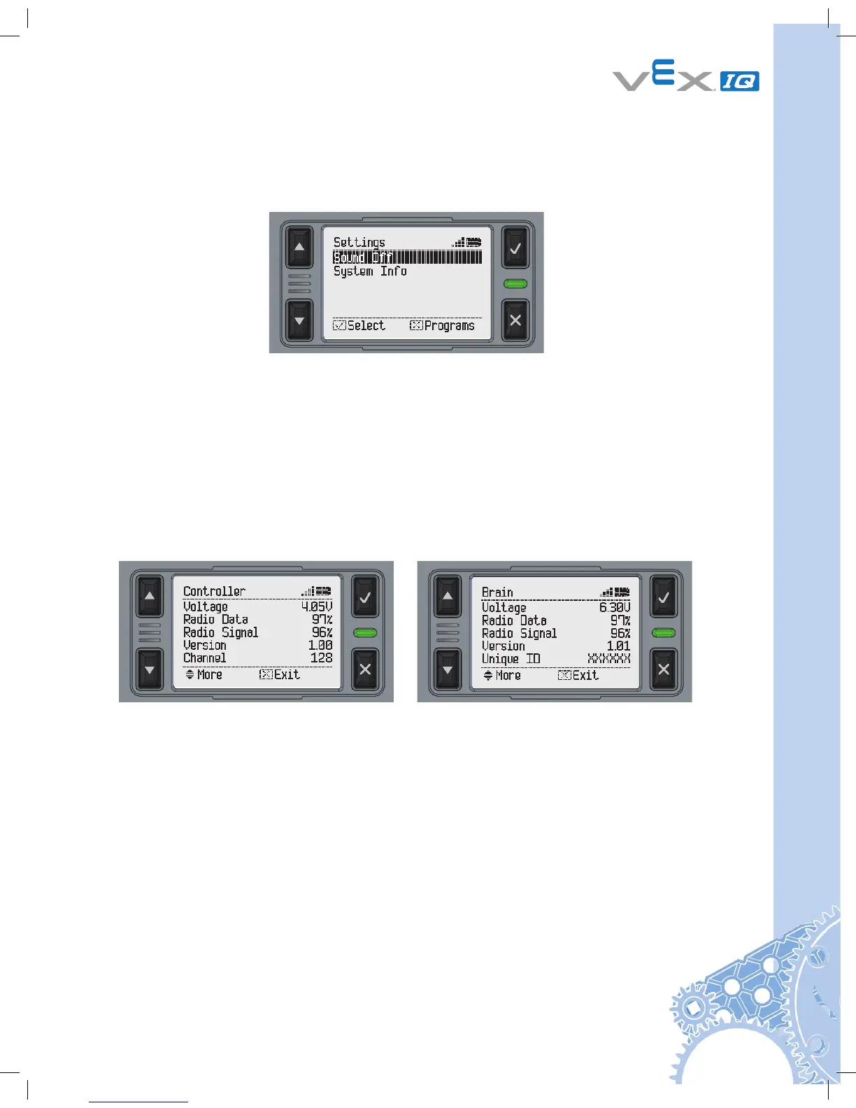 The System Info menu contains two menu screens: one for the VEX Controller and another for