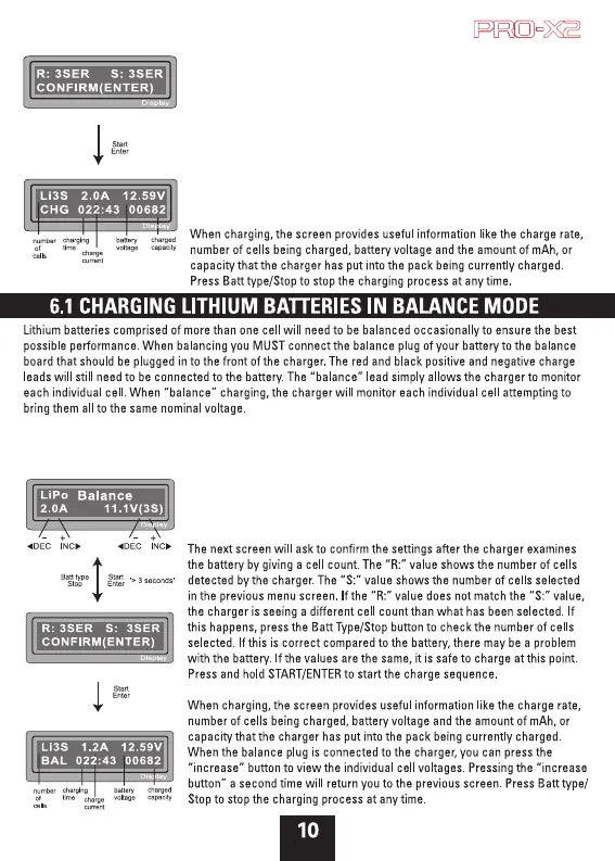 pack that will be charged. To change these values, press the START/ENTER key to cycle through the