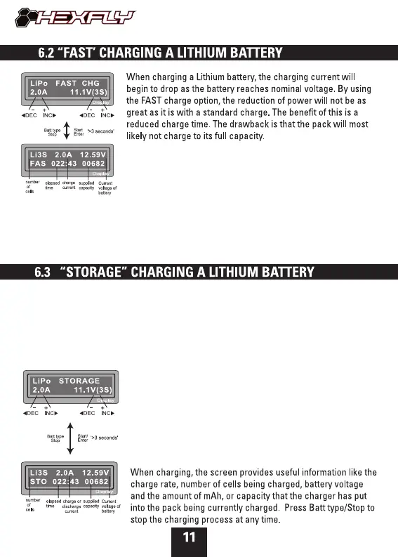 3.75V for Li-ion, 3.80V for LiHV and 3.3V for LiFe per cell). Storage mode will automatically