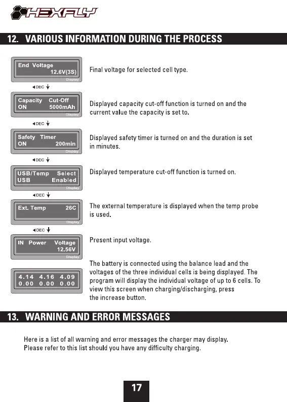 HEXFLY PRO-X2 - Information During Operation; Displaying Key Process Information; Warning and Error Messages; Interpreting Error Codes