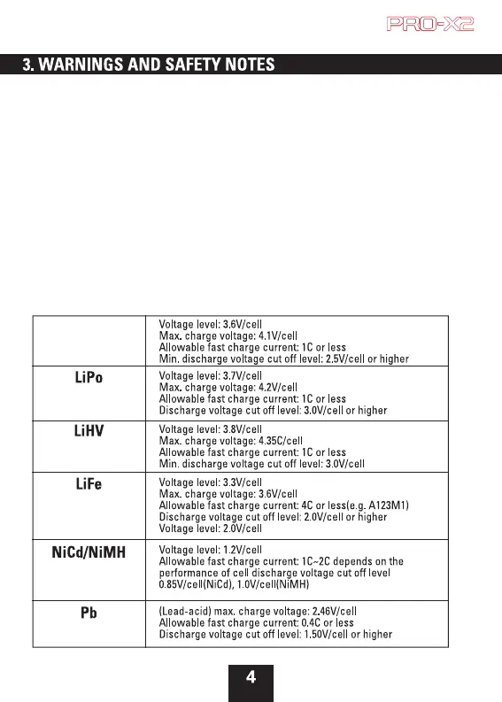 Be sure to understand the specifications of the battery to be charged or discharged. If the