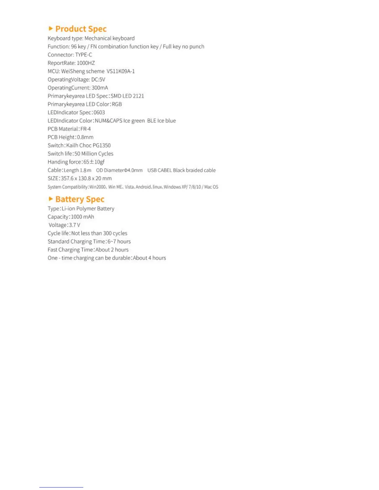 Hexgears K950 - Product Spec; Battery Spec; FCC Statement