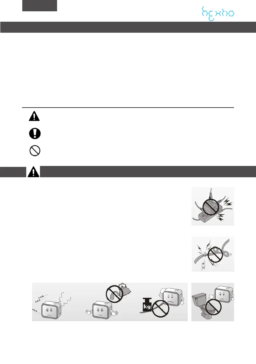 • Do not place heavy items on the power cord, they could damage the