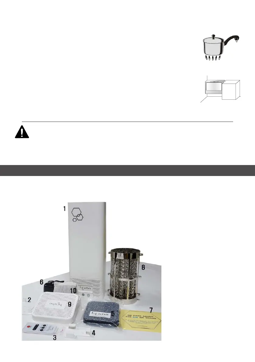 Stellen Sie Hextio nicht so auf, dass der Luftstrom zum und vom Gerät